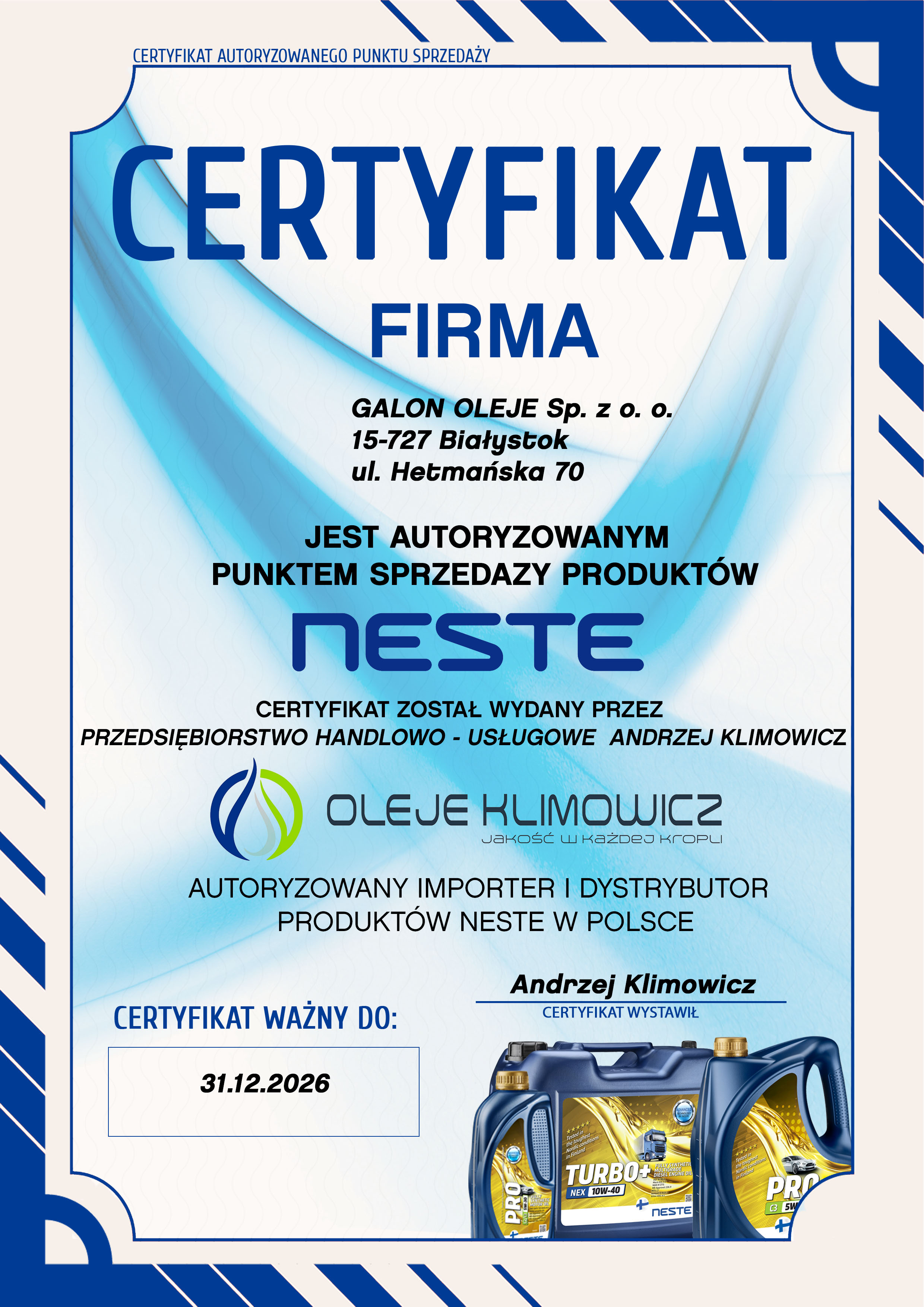 | Odbiór w sklepie (Galon Hetmańska) | Białystok ul. Hetmańska 70 | Za darmo! |